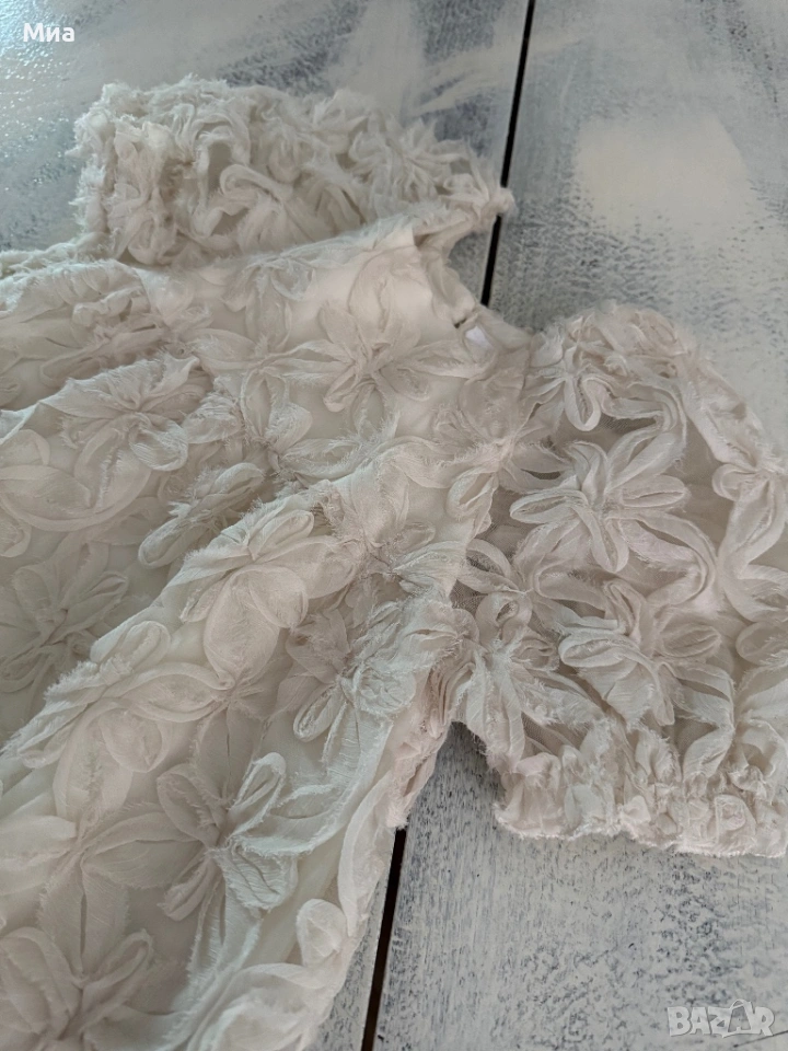 Нежна рокля с 3D цветя на Zara в бохо стил за момиченце на възраст 3-4 години. Подходяща за специален повод, ежедневна разходка. Без забележки слагана е веднъж.