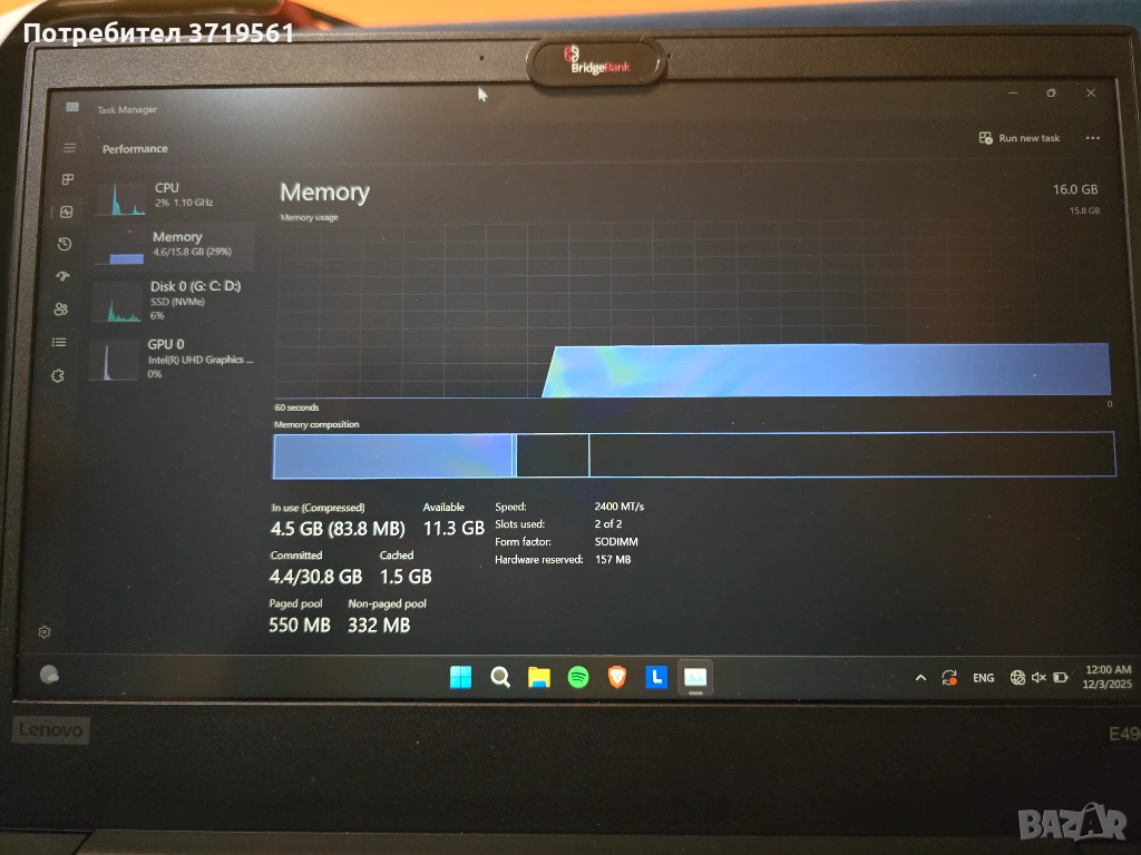 * Дисково пространство: 256GB PCIe NVMe SSD – за светкавично зареждане на Windows и приложенията.