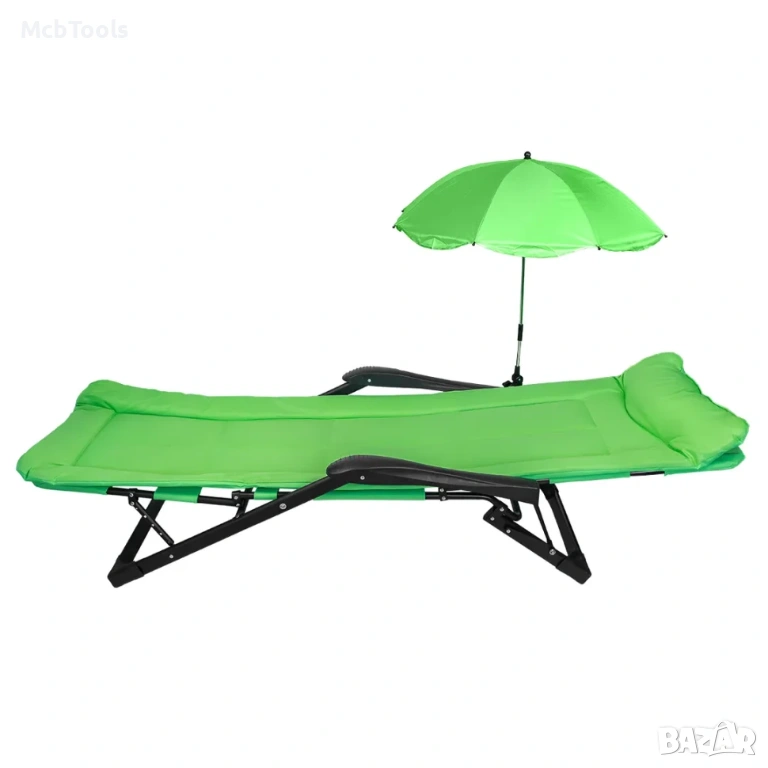 Сгъваемо зелено походно легло тип шезлонг с чадър