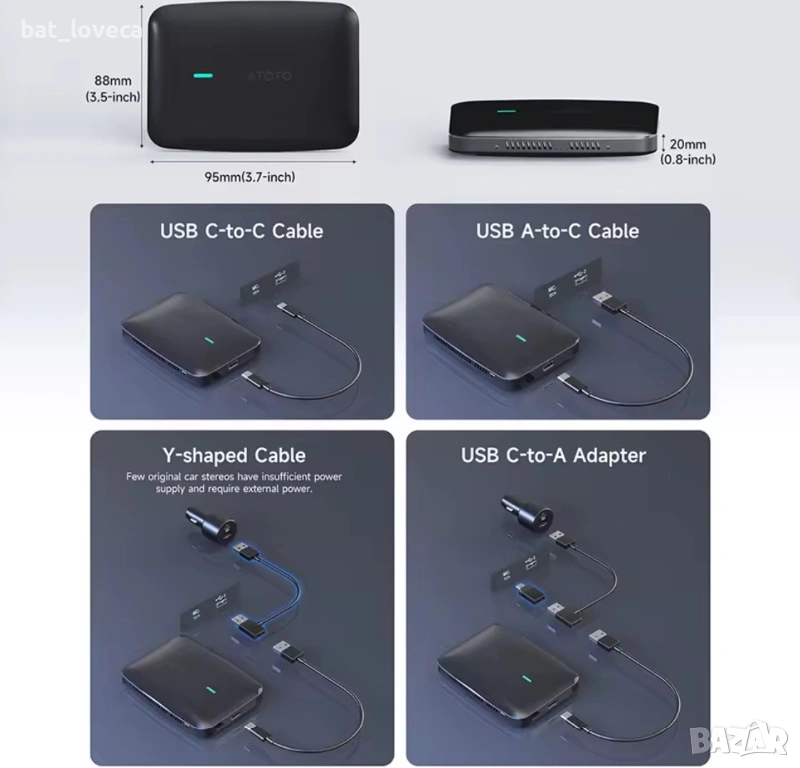 ATOTO Car Smart AI Box Android система 4GB 32GB Android Auto Dual WiFi Bluetooth адаптер за кола CarWave CB4 за Apple Carplay