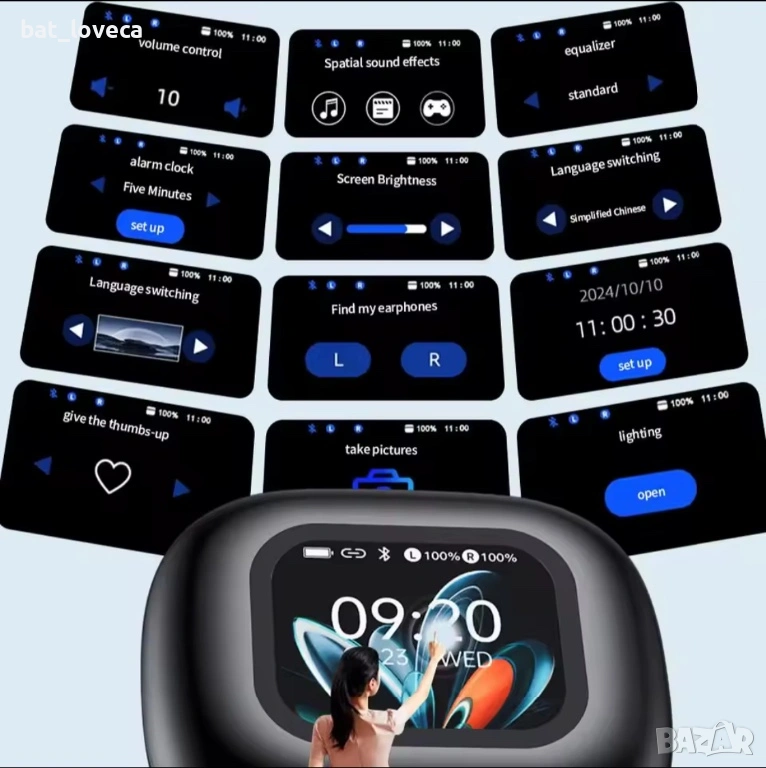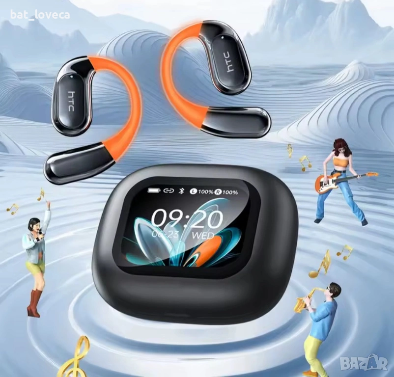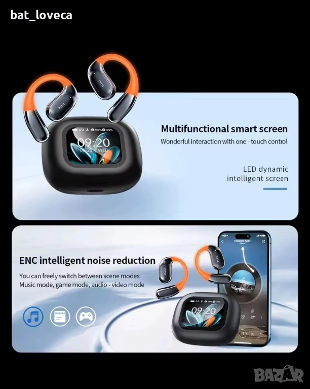 Bluetooth слушалки HTC NE27, слушалки с AI преводач, спортни слушалки OWS, безжични слушалки с LCD екран, светеща кука за ухо, дълъг живот на батерията