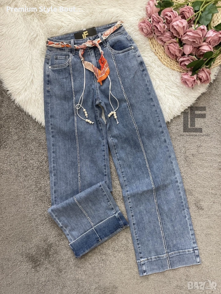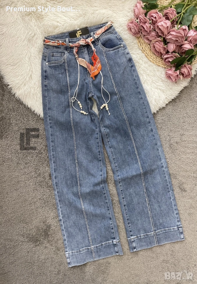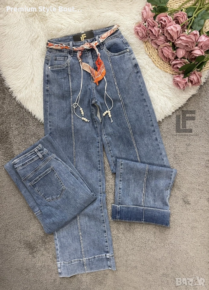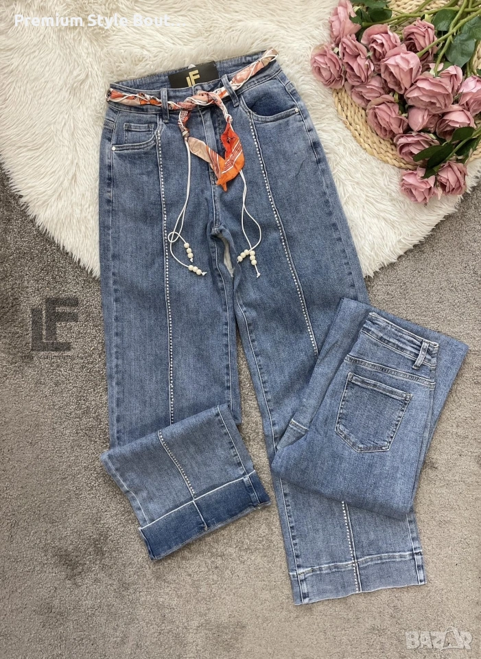 Дънки LFS Cool 1038 33.90€ (66.30лв.) Материя: Деним с голяма еластичност ( 93% памук, 5% вискоза, 2% еластан ) Кройка: Кройката е с прави, широки крачоли, издължаваща, средна към висока талия, декорирана с камъчета #LFS Стилистите съветват: Любима кройка и стилен цвят, от които не можем да свалим очи. Точно тези са със средна към висока талия, прави с издължаващ ефект! Излишно е да казваме, че са в графа #musthave, но ако все пак се чудите дали имате нужда от тях и с какво ще ги съчетаете, казваме Ви – да, имайте ги и ги носете смело с всичко в гардероба си от ризи до дантелени блузи или oversize тениски. Дължина: Цяла дължина 105 см, дължина от вътрешната част на крачола 75 см Размер на снимката – S Коланът е подарък към всеки чифт