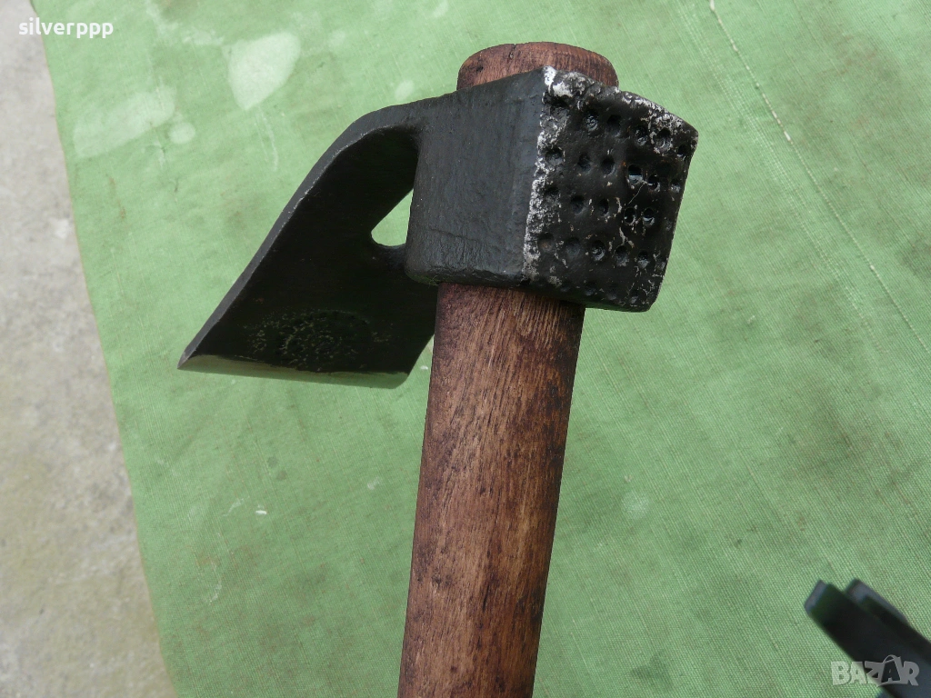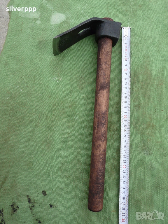 на стоманата. Инструмента е здрав и заточен . Размера се вижда.