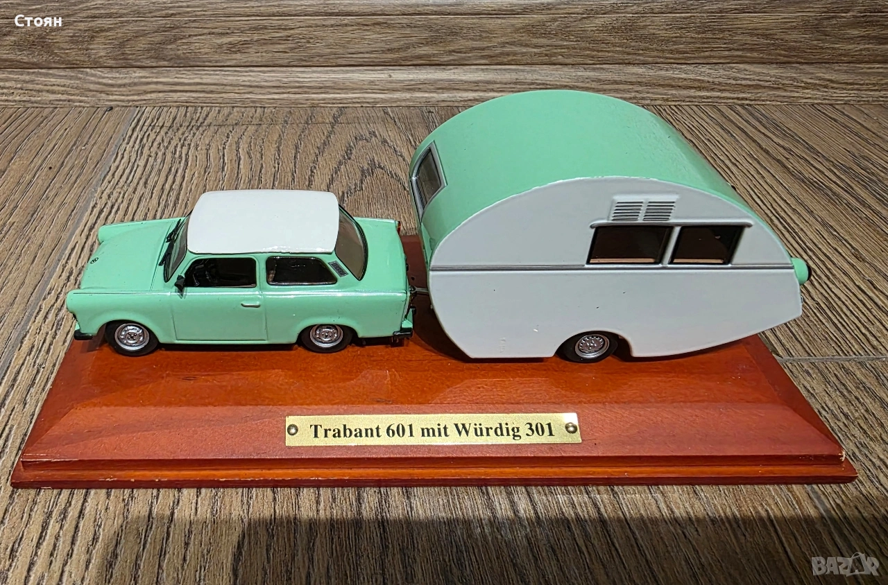 Умален модел на автомобил Trabant 601 mit Wurdig 301. Мащаб.1:43 Изпраща се с опция преглед по Еконт.
