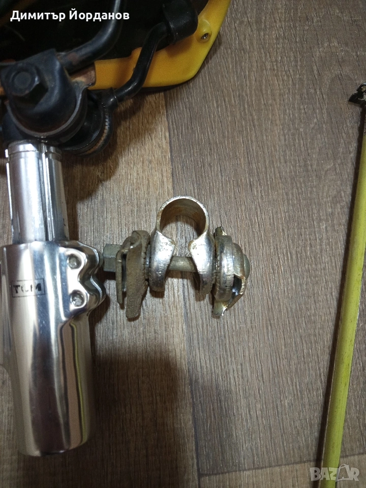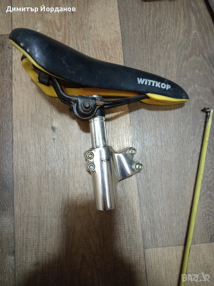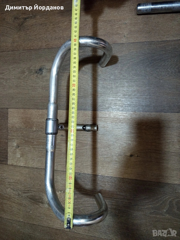 Здравейте, Продавам останали части от ретро проект, а именно: 1. Ретро шосейно кормило с лапа. Размери на снимките 2. Шосейна седалка с регулиране за тежестта 3. Колче за седалка размери на снимката. Цена за всичко 40 евро. Не се разделят.