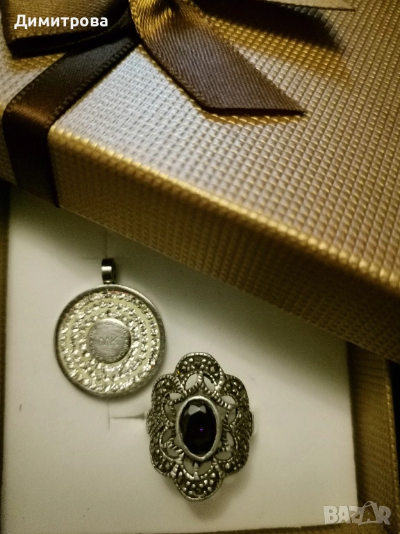 Сребърен пръстен с аметист и висулка Michael Cors → Обява 53927164