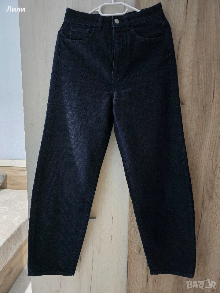 Купувани са About you .Материята е качествена ,мека ,памучна и няма еластан .Талия 33 см ,ханш 47 см на дънките. Носени са веднъж ,без следи от употреба.Модела е baggy,широк крачол и висока талия .Якето също е с такъв модел ръкави.