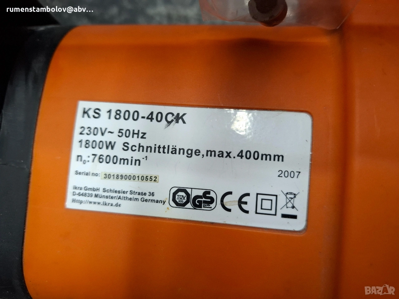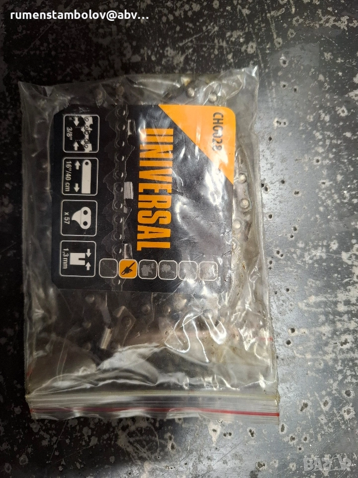 Трионът е употребяван, но в добро състояние. Веригата е нова, 40см, 57 зъба, марка Universal. Замених го с бензинов такъв и сега ми е непотребен.
