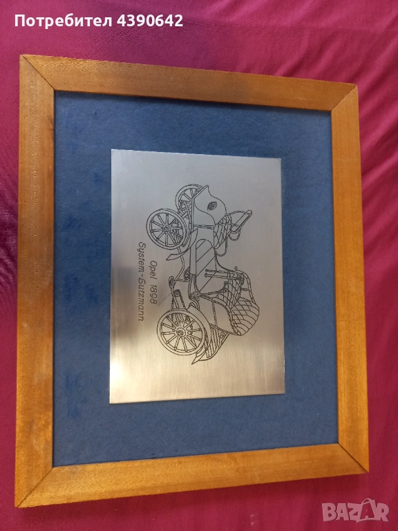 Метално пано в рамка на първия Опел 1898г. → Обява 53928090