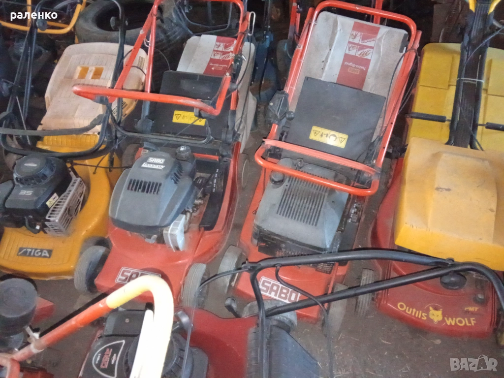отлични самоходни паркови косачки с двигатели бригс готови за работа; аератори ;палцови и тракторни косачки на ниски цени; немски моторни коси по 50евро за брой; фрези по 140 -250е;всякакви части и двигатели
