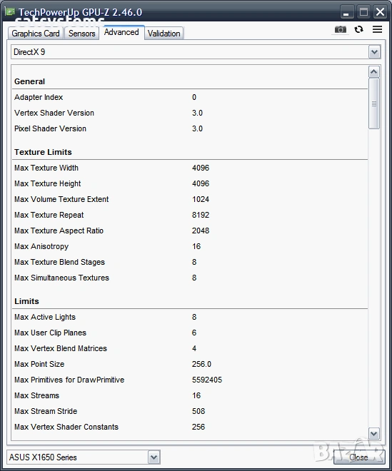 Chipset/GPU Model: ATi Radeon X1650 PRO/RVRV535