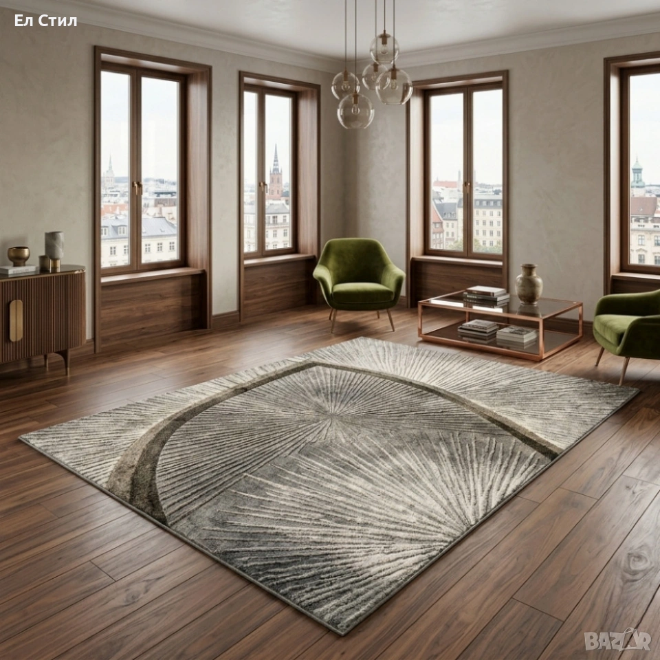 Размери: 120 x 160 см — оптимален за средни холни площи и зони около масичка.