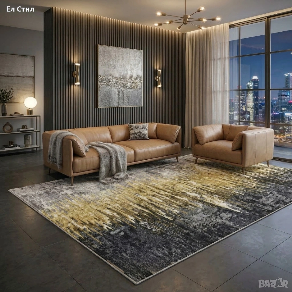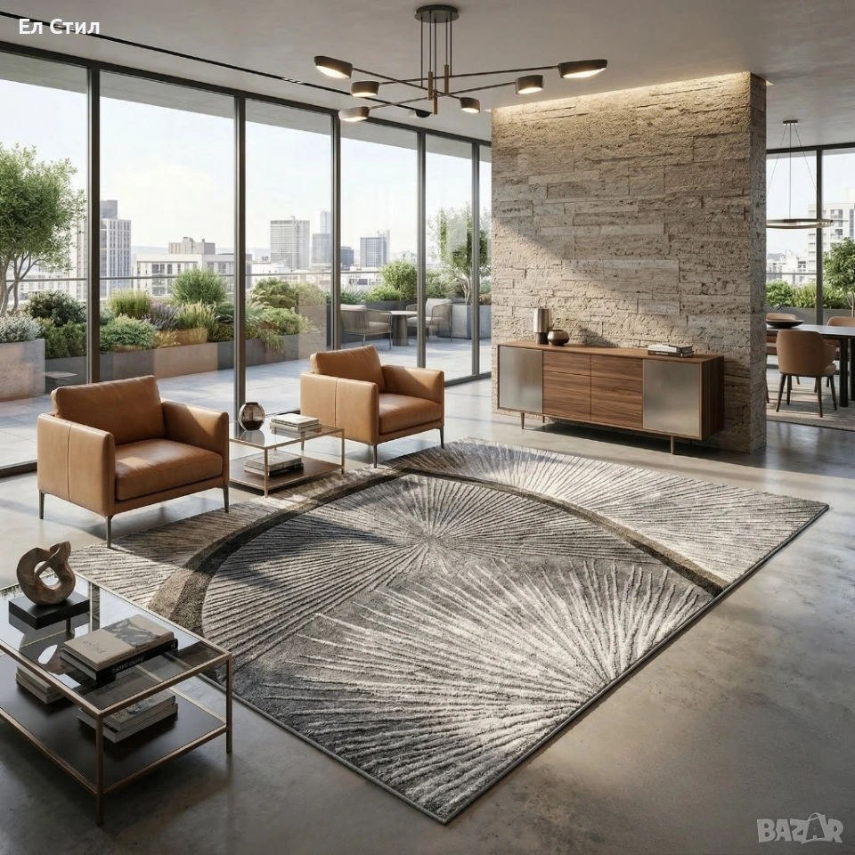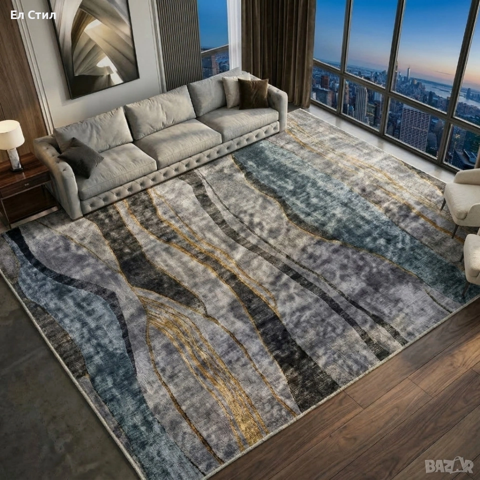 Размер: 120 х 160 см — оптимален за холни зони и четни пространства.
