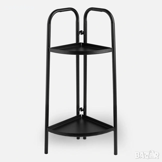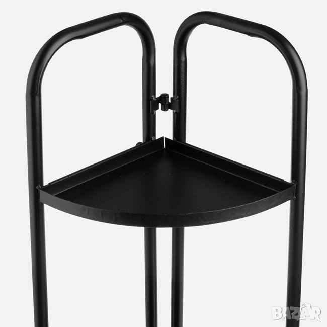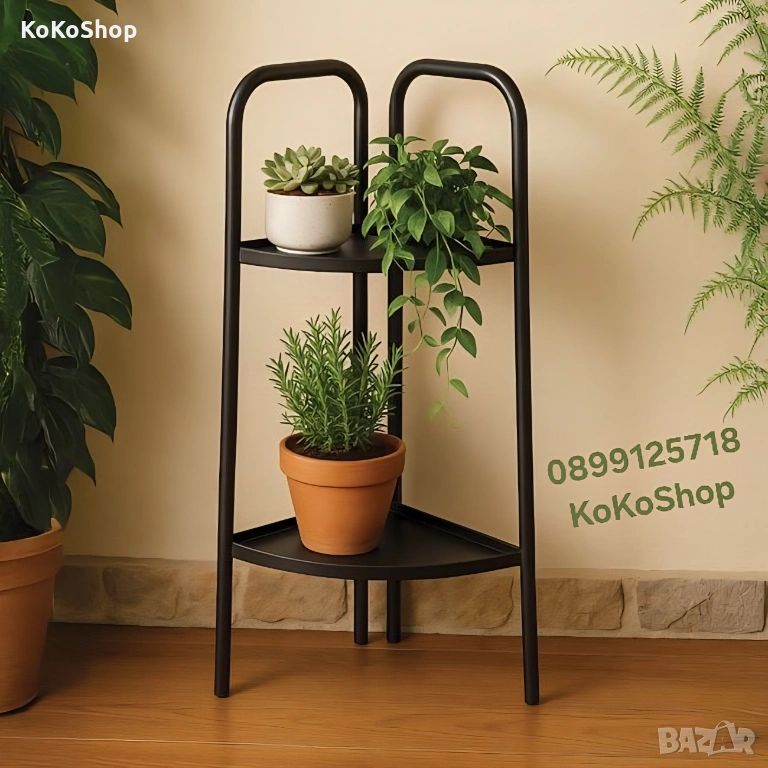 Черен метален стелаж за цветя, идеален за дома или офиса.