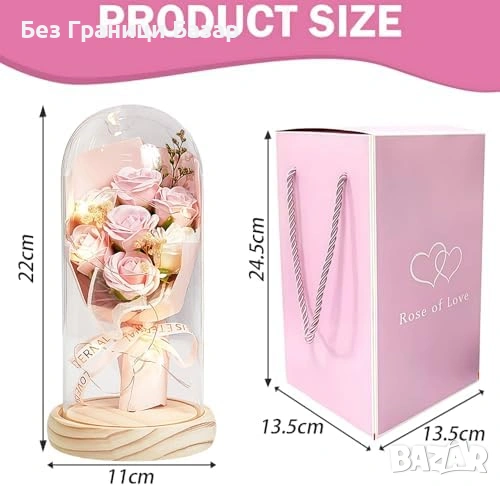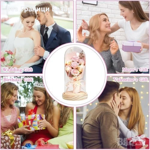 Нова Вечна роза с LED светлини в стъклен купол подаръчна кутия за жена