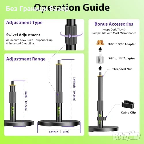 Нова настолна Ултра ниска стойка за микрофон 12.7-19.3 см 3кг метална