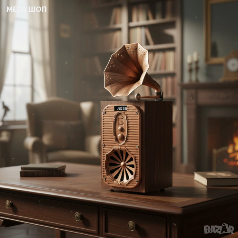 Bluetooth радио колонка AS39, 1x8W, 1200mAh, Кафяв – ретро звук