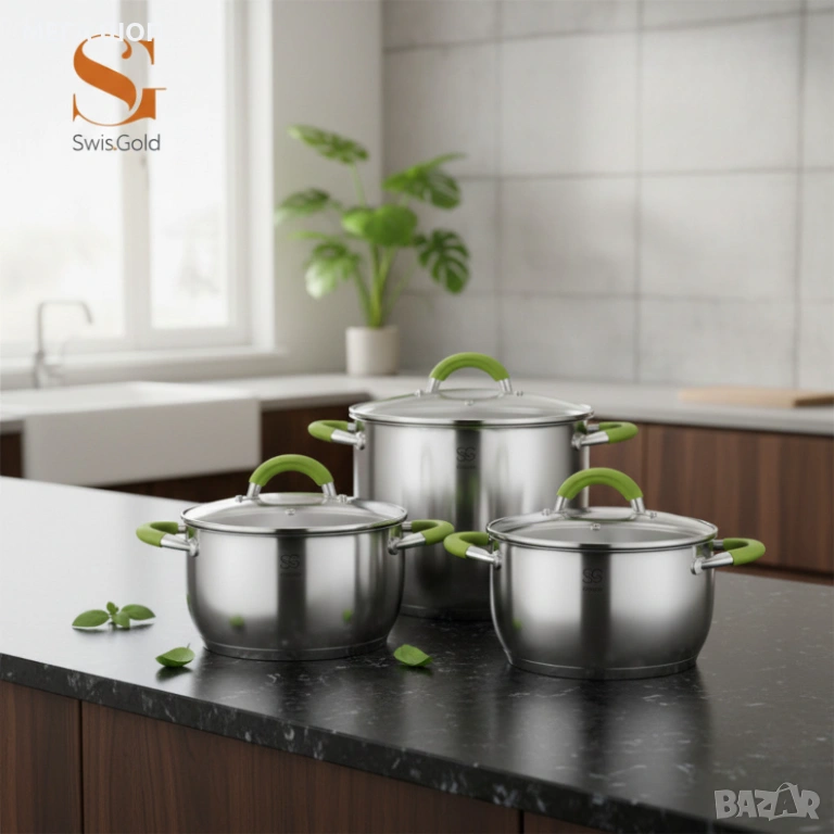 Комплект тенджери Swisgold – 3 броя, 5-слойно дъно - бързо и равномерно готвене