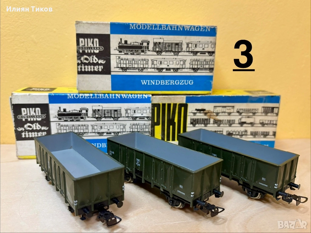 Продавам 3 открити товарни вагона на марката Piko, с мащаб 1:87