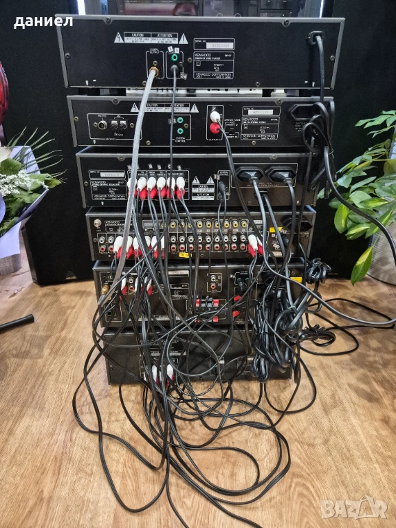 Всички компоненти работят безупречно! Цената е 550 евро + подарък една рядка и красива аудио касета KENWOOD CD90 - TYPE II - хромна лента (последната снимка)! И понеже сета е много тежък за предпочитане е лично предаване в района на В. Търново!