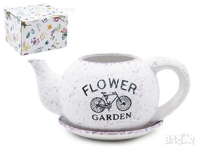 КАШПА ЧАЙНИК С ЧИНИЙКА FLOWER ЛИЛАВО С БЯЛО