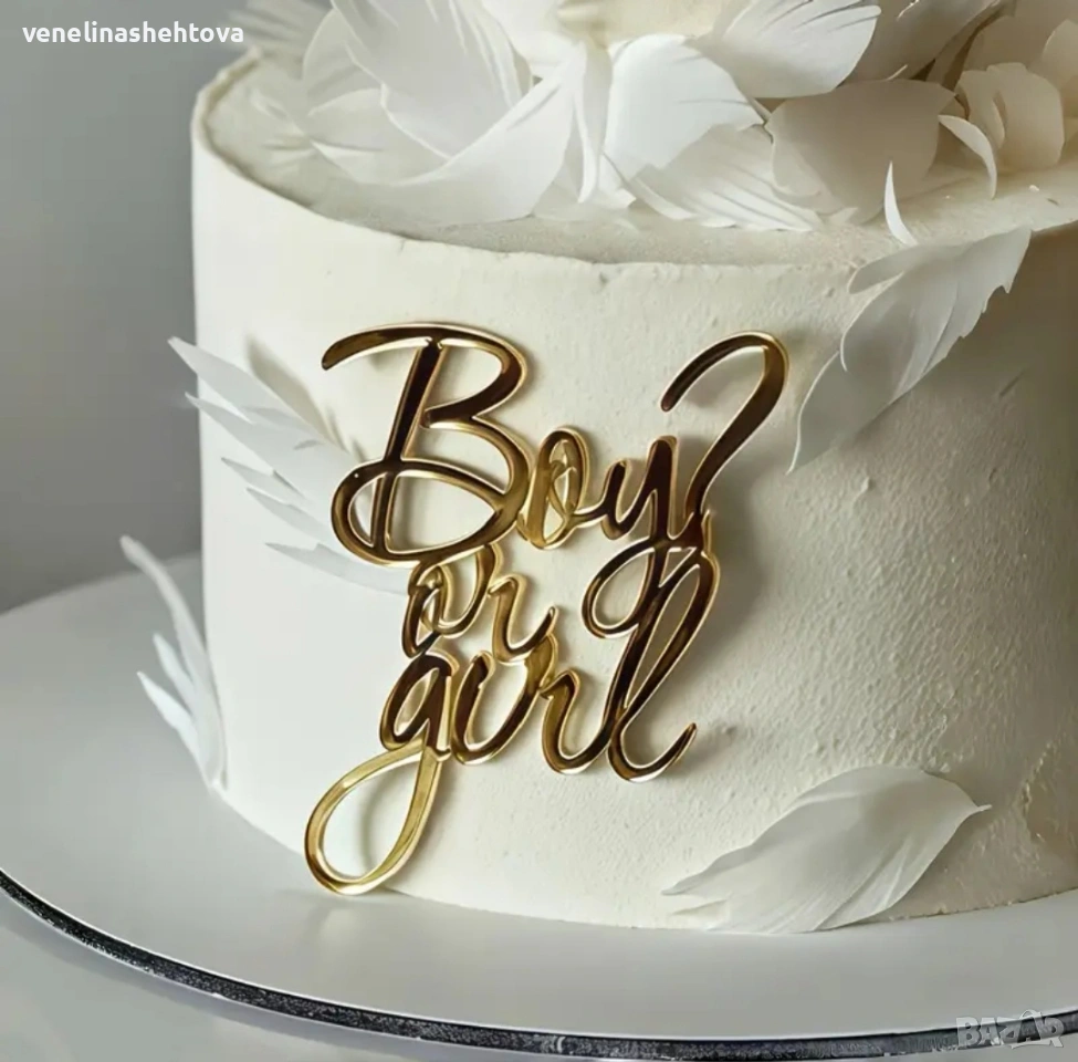 Boy or girl джендър бебешко парти определяне на пола декорация на торта → Обява 53929044