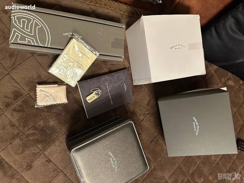 Часовника е пълен комплект с документи, кутии, кожена и силиконова каишка + подарък метална по избор...Закупен 2023г. от CH официалния сайт на AN