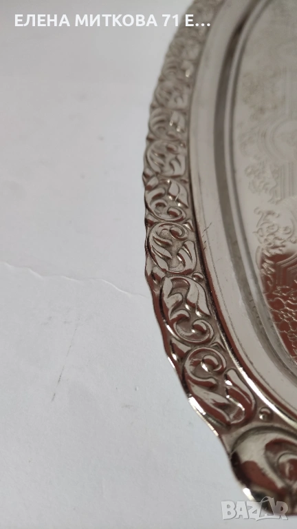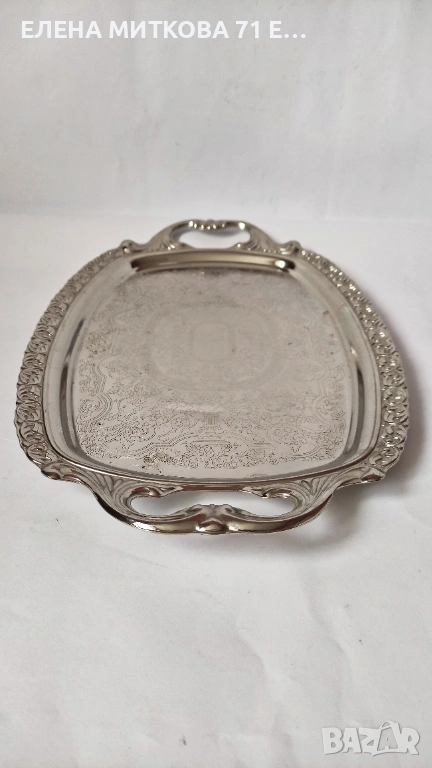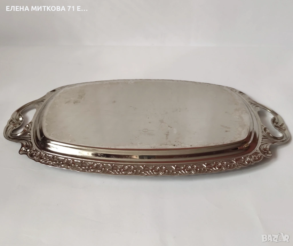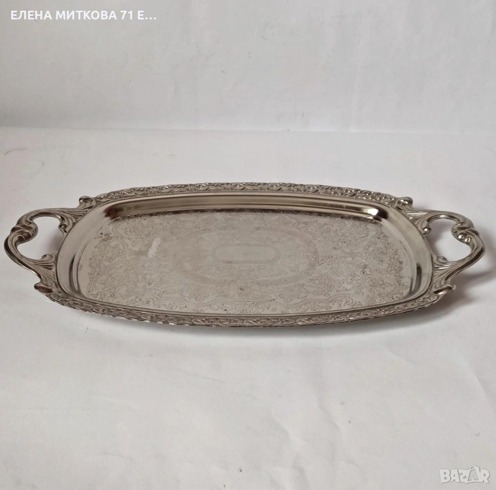 Масивна табла от алпака-с дръжки-с гравирано дъно и орнаменти по края-използвана,много запазена-габаритни размери 41 х 25 см , вътрешни размери на полезната част 30 х 20 см