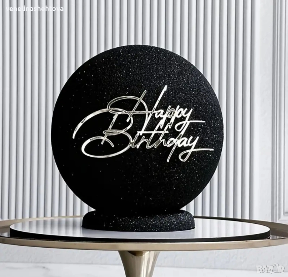 Happy birthday сребрист акрилен топер за декорация на торта → Обява 53929224