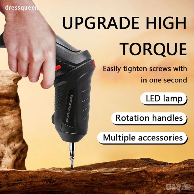 Електрическа отвертка с презареждаема батерия и USB кабел