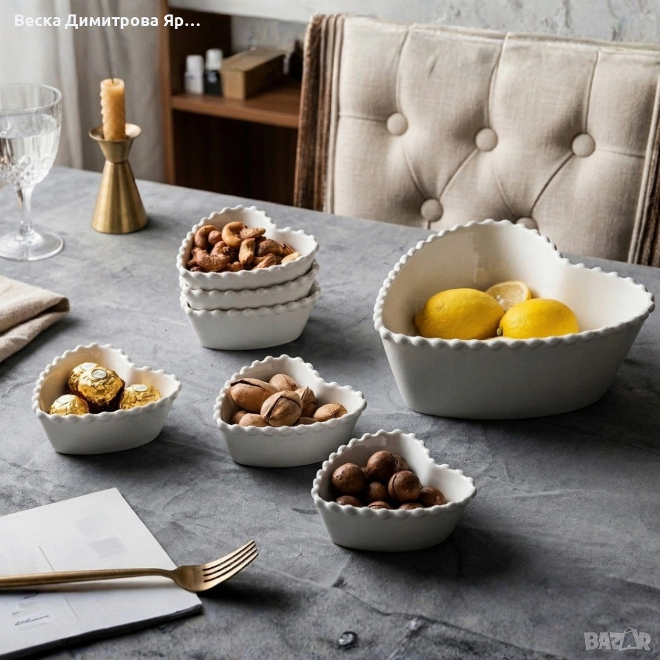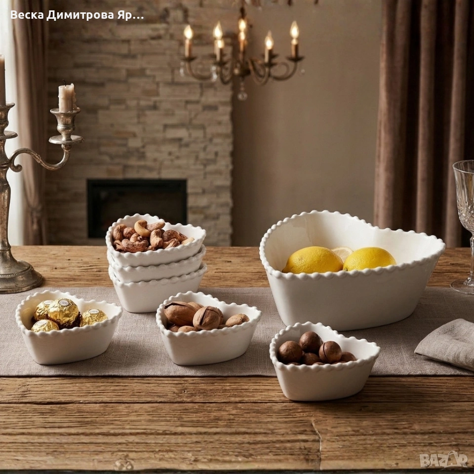 Луксозен комплект порцеланови купи със заоблен релеф - 7 части → Обява 53929293