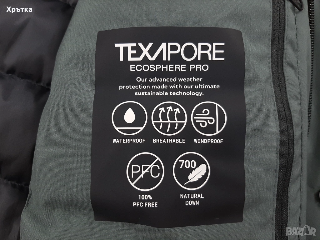 Технология Texapore Ecosphere Pro - иновативна, напълно рециклирана трислойна система, която съчетава изключителна водоустойчивост с професионално ниво на дишаемост, осигурявайки пълна ветрозащита и оптимален термокомфорт при интензивни натоварвания.