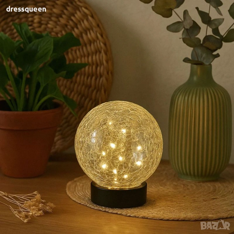 Това е перфектният подарък за всеки, който цени красотата в дома и градината. Благодарение на ефекта на напуканото стъкло, лампата улавя и най-малките лъчи светлина, превръщайки двора, верандата или терасата в приказно пространство. Без кабели, без разходи за ток и без сложна инсталация – просто я поставете на слънчево място и се насладете на магията.