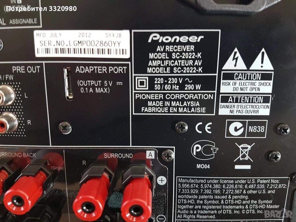 Продавам AV ресийвър Pioneer SC-2022 в отлично състояние.