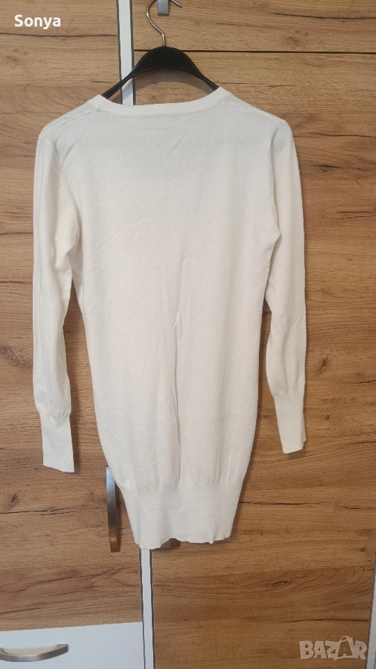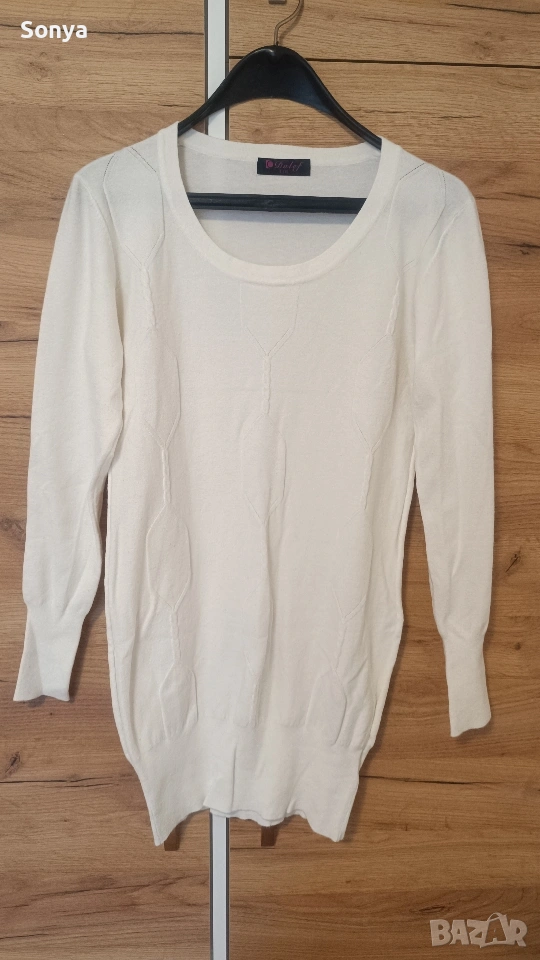 Чисто нова бяла туника, материята е много мека. Не пазя етикета, но не е носена, пробвана 2-3 пъти, подарък.