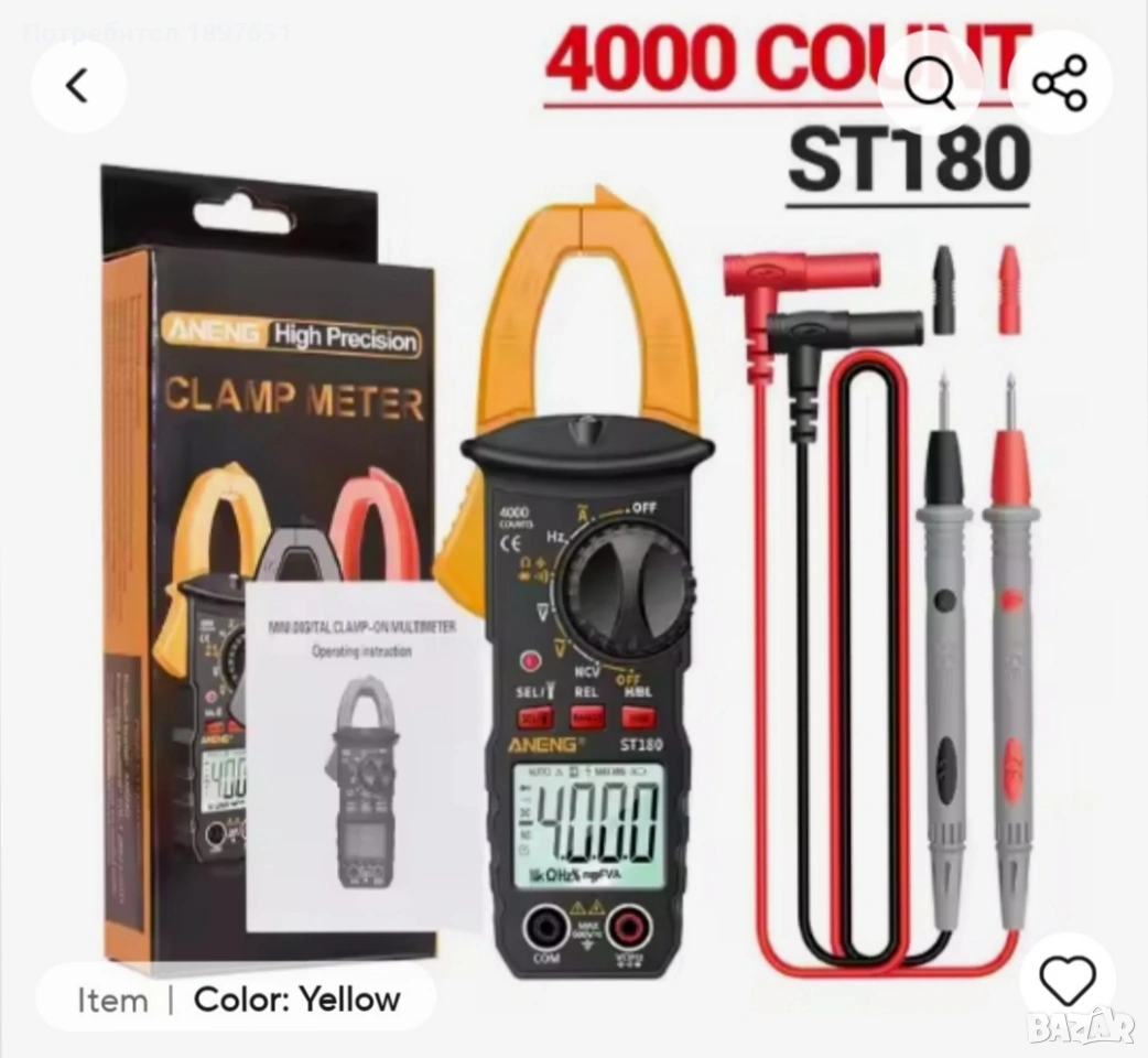 ST180 Цифрови амперметър клещи 4000 броя мултицет амперметър
