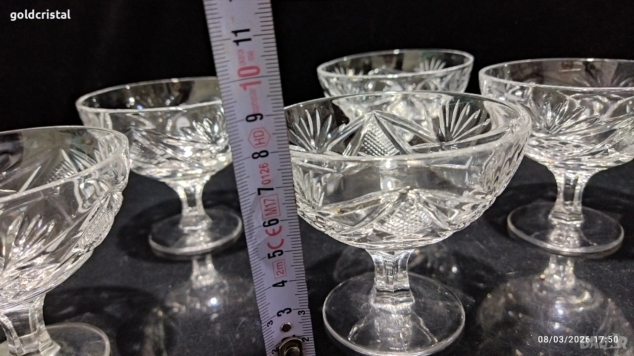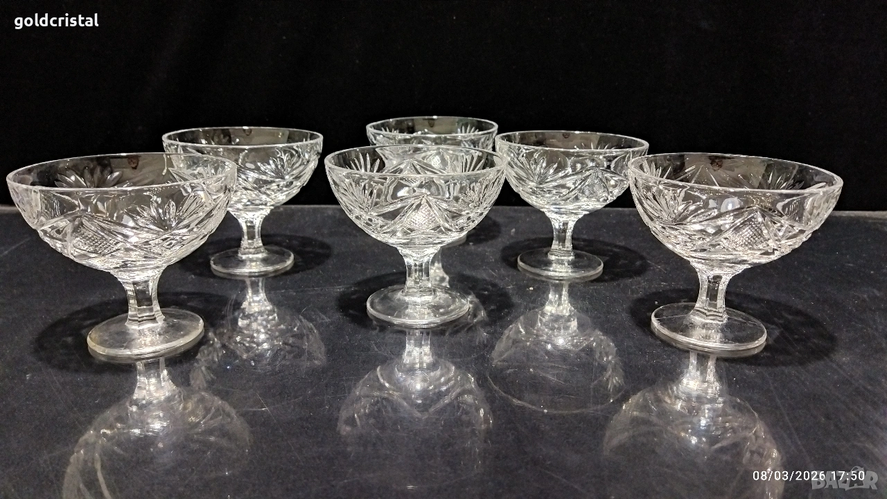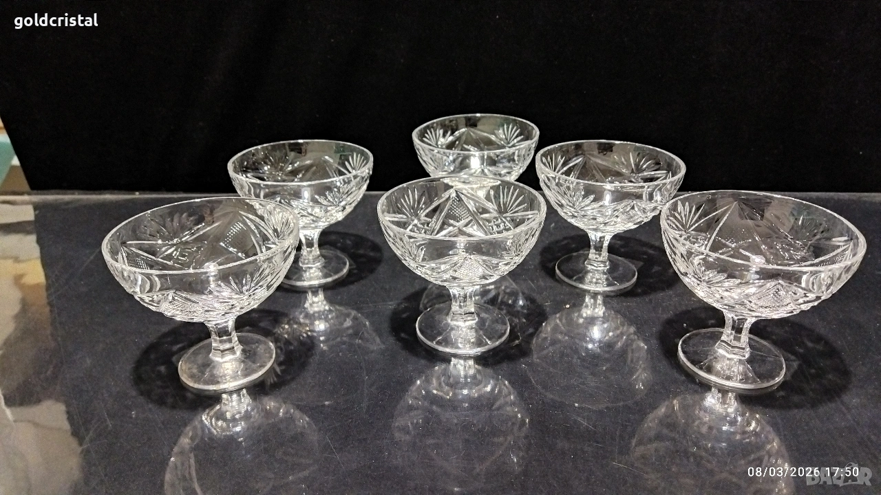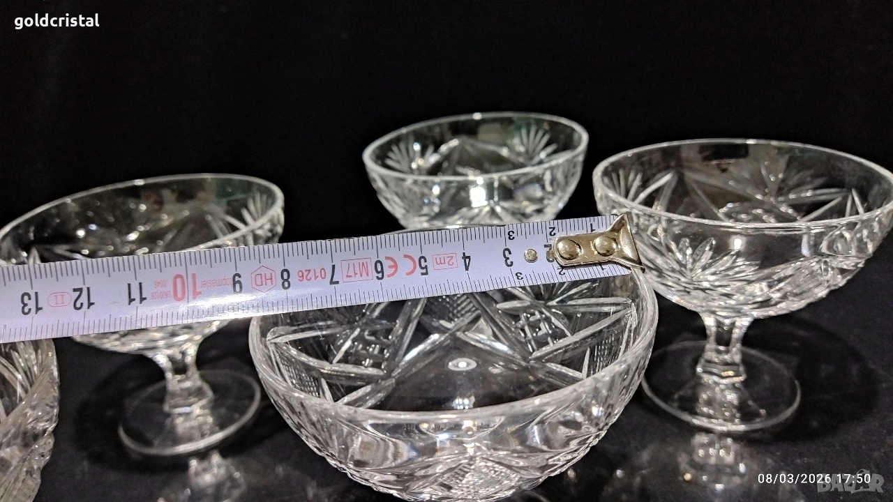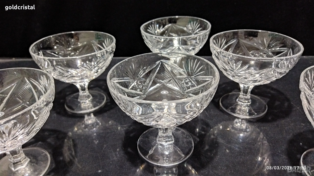 кристални чаши за десерт сладолед мелба без забележки сервиз комплект сет лот ретро арт декор винтидж колекция стари старинни антикварни предмети обзавеждане за дома и семейството подходящи за подарък за ценители и колекционери