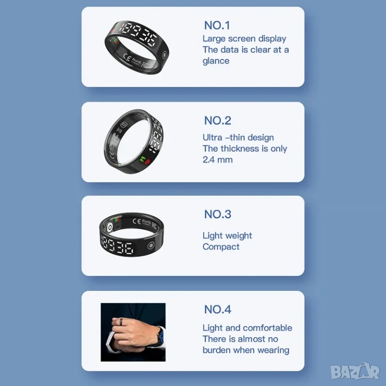 Продавам чисто нов Smart Ring TK9 – интелигентен пръстен с дисплей и модерни функции за управление чрез жестове, здравен мониторинг и проследяване на активността. Подходящ както за мъже, така и за жени, съвместим с Android и iOS устройства.