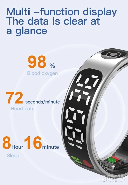 Пръстенът разполага с мини дисплей, който показва:
