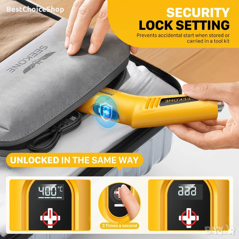 SEEKONE безжичен мини пистолет с горещ въздух до 400°C, USB