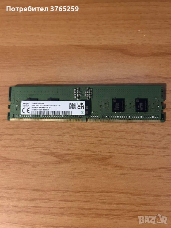 HYNIX HMCG78AGBRA190N 16GB (1x16GB) DDR5 5600MT/s PC5-44800 1Rx8 ECC регистриране 1.1V CL46 SDRAM 288-пинов RDIMM модул памет за сървър.