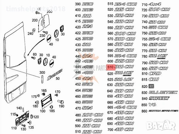 Емблема надпис задна врата "316 CDI" 215х28 мм