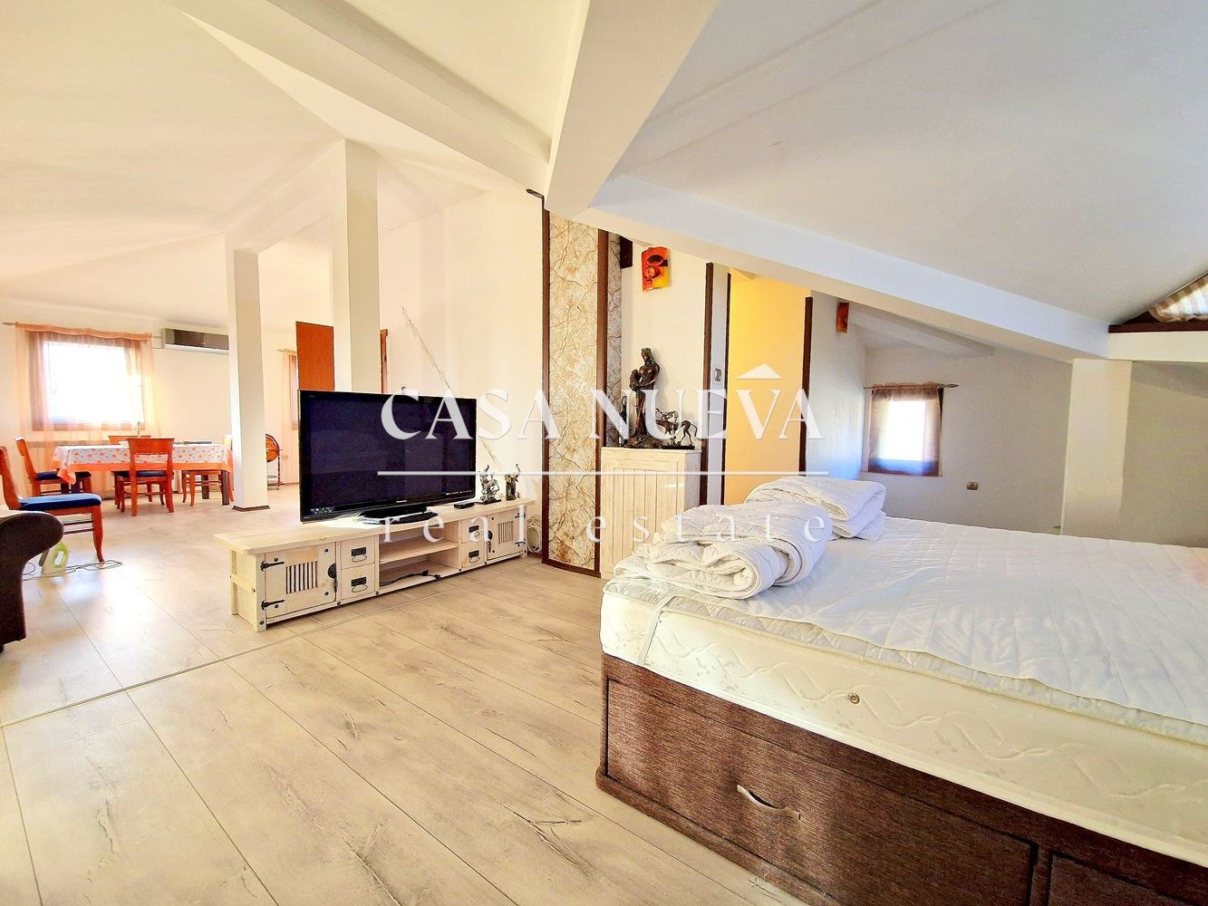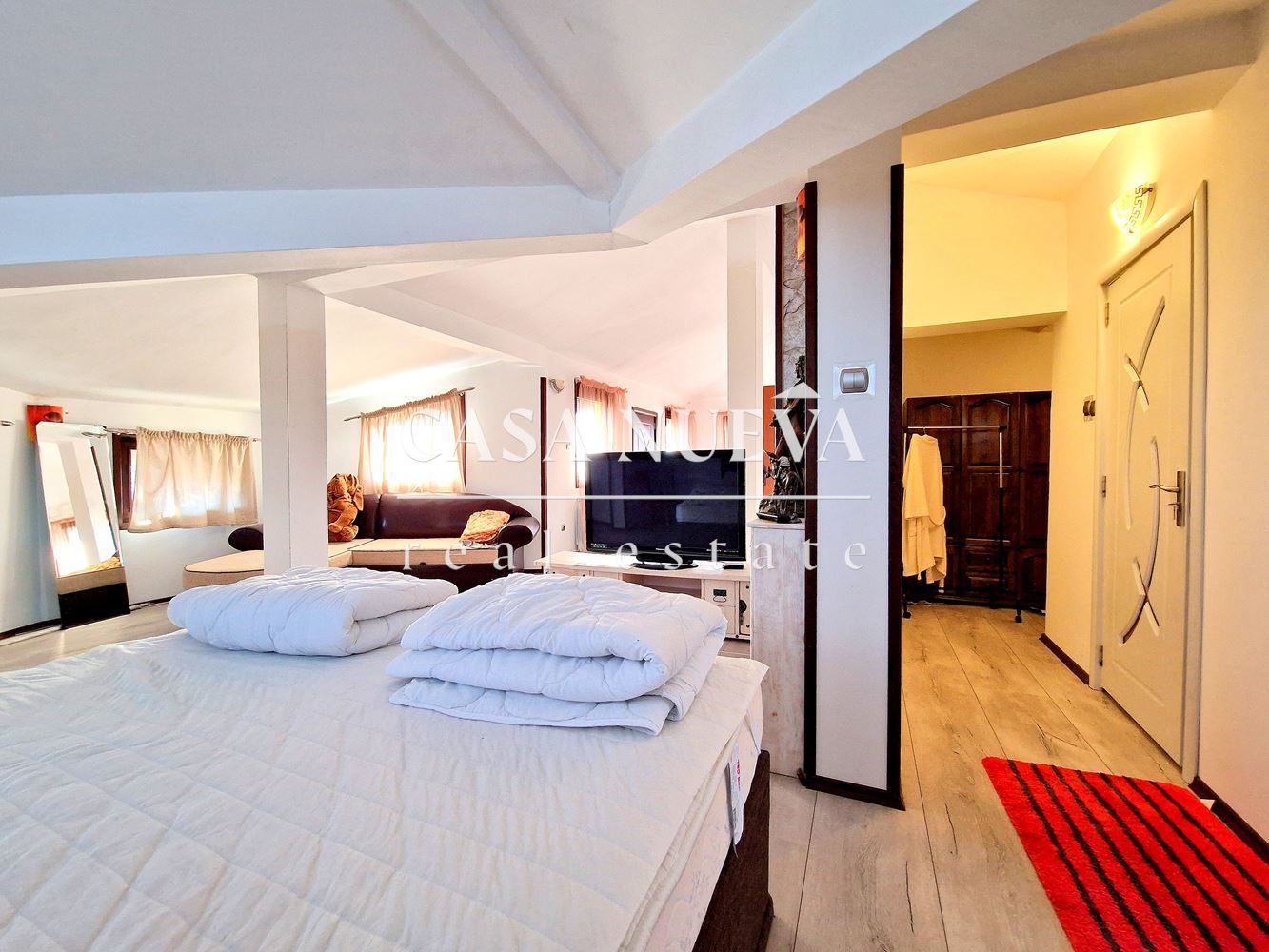 Втори етаж: еднопространствен апартамент (студио) с дрешник, баня с тоалетна и тераса.
