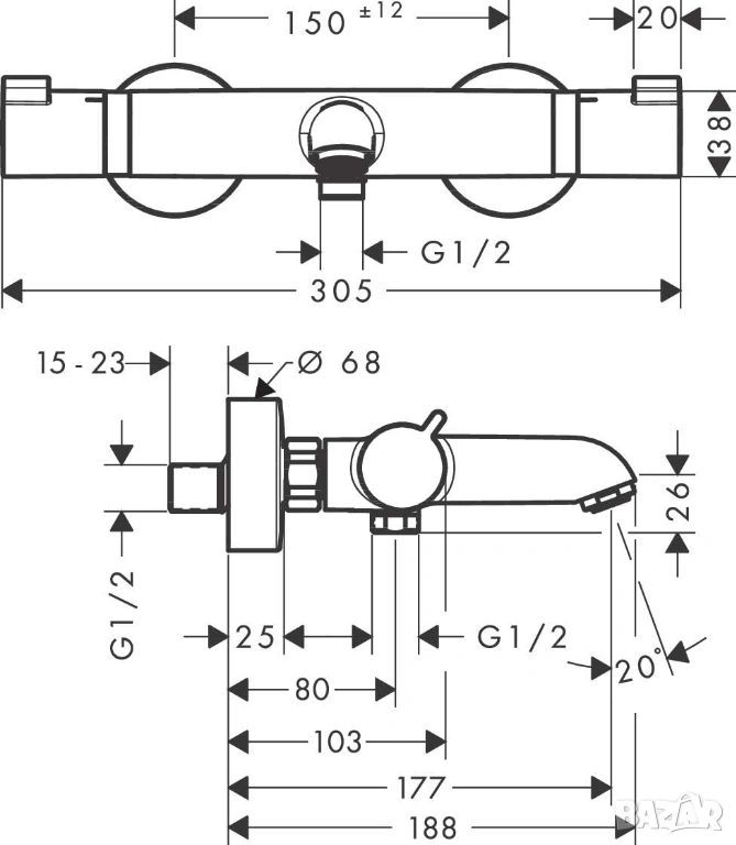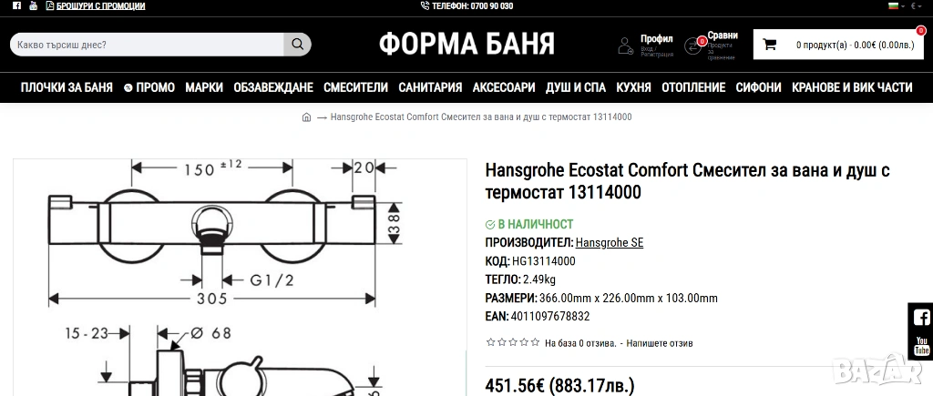 НОВ Hansgrohe Ecostat Comfort 13114000 – термостатен смесител за вана/душ