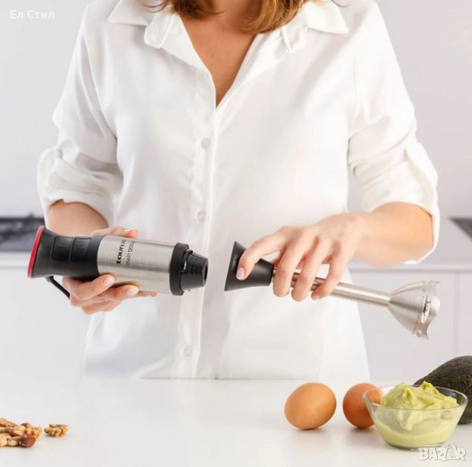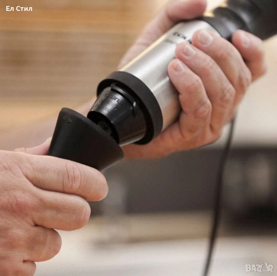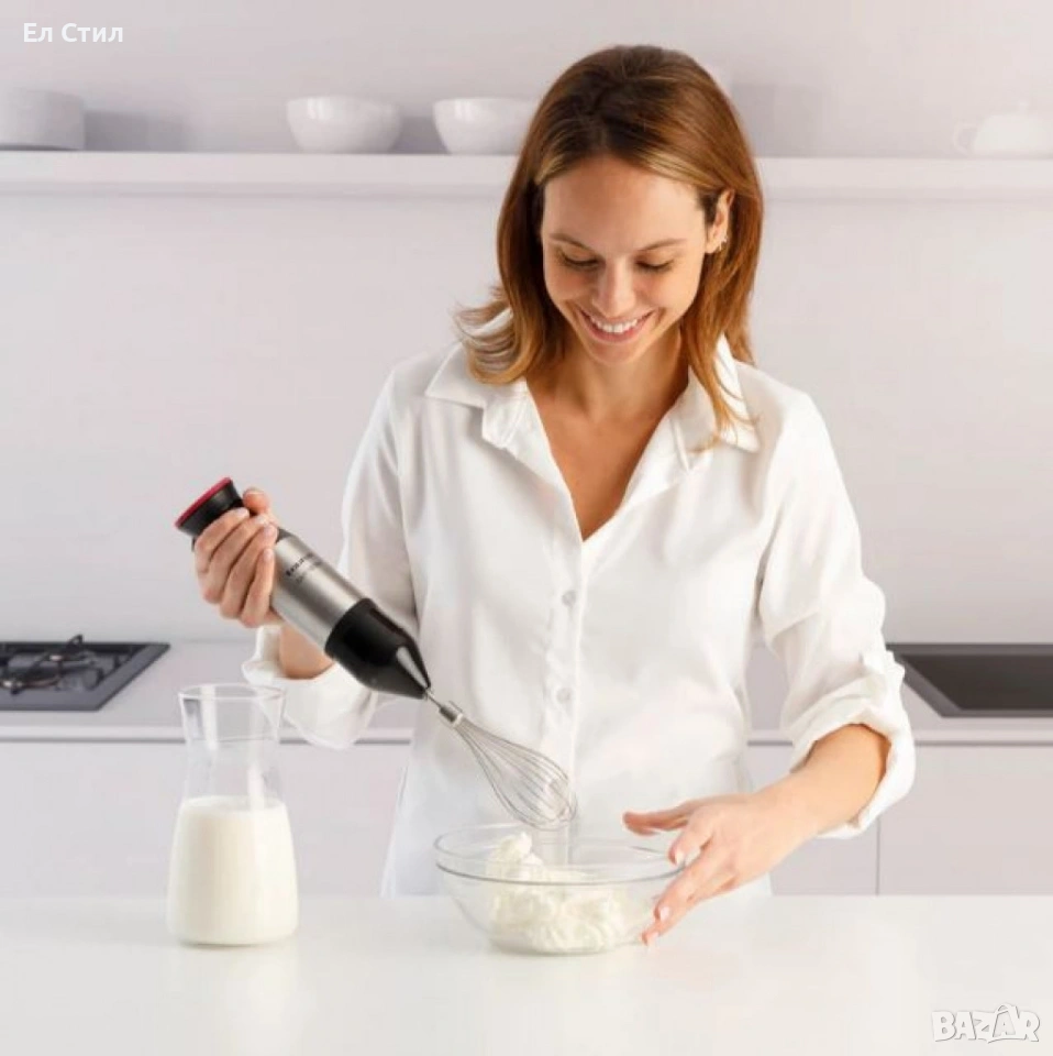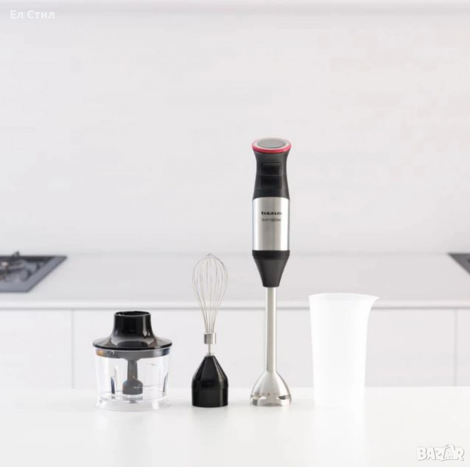 Модел: Taurus BAPI® 1200 PLUS INOX – с пълен комплект аксесоари:Мощност: 1200W;Управление: 20 скорости + Turbo функция;Система: Turbo Rotation – подобрена циркулация на храната;Остриета: Неръждаема стомана, с двоен ефект (пасиране + нарязване);Пръчка: Неръждаема стомана, подвижна;Ергономична дръжка Soft Touch + предпазител от пръски;Поддръжка: Аксесоари и пръчка, подходящи за съдомиялна машина;Материали: Без BPA;Включени аксесоари: Мерителна чаша, чопър, емулгатор.Модел: Taurus BAPI® 1200 INOX – с 1 аксесоар-45 евро
