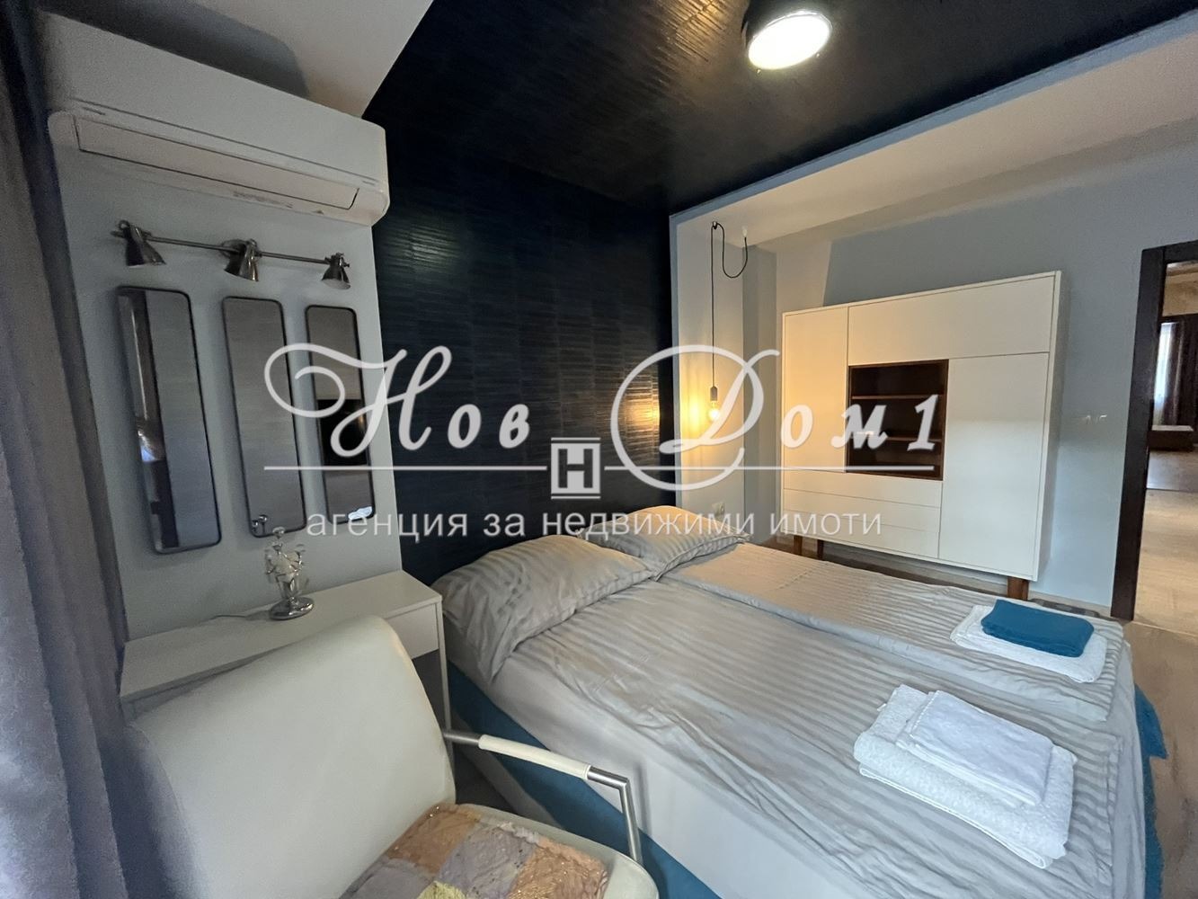 Спалня с луксозно легло и гардероб с достатъчно пространство