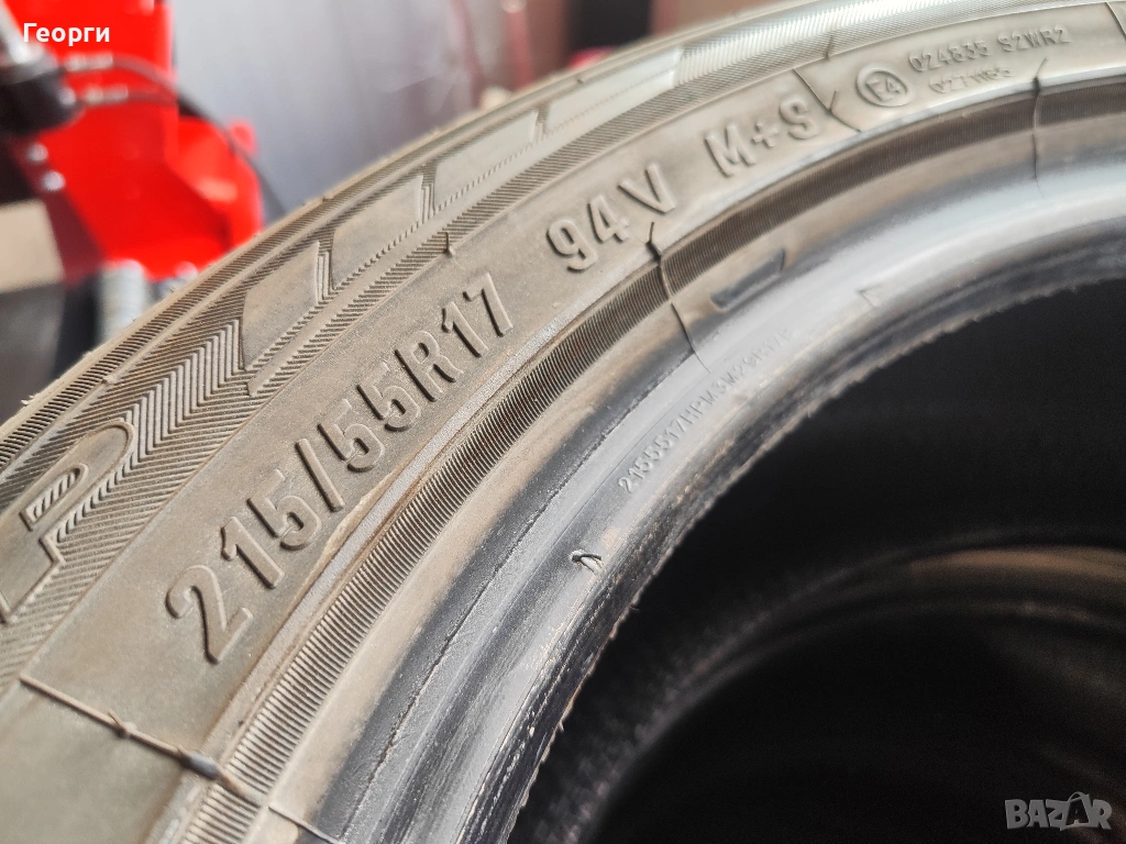 4бр. Maxxis,215/55/17 ДОТ 1623, 7.1mm/ 5.2mm грайфер, цената е за комплект. Гумите са перфектни, без забележки, проверени са машинно за кривини, балони! Разполагаме с всякакъв размер нова и втора употреба гуми от 14-22 цола за автомобил, джип и бус.