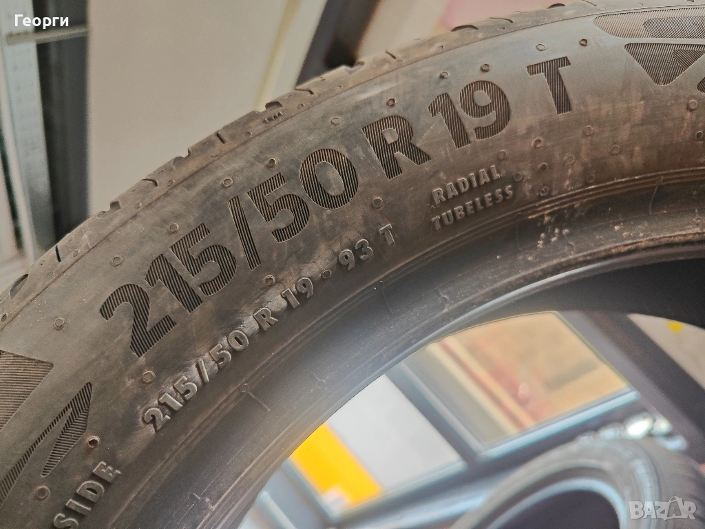 2бр.Contiental ,215/50/19, ДОТ 4023, 6.2mm грайфер. Гумите са перфектни, нови, без забележки, проверени са машинно за кривини, балони!! Разполагаме с всякакъв размер нова и втора употреба гуми от 14-22 цола за автомобил, джип и бус.