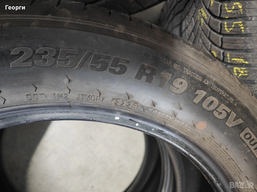 2бр.Kumho,235/55/19, ДОТ 2223, 6.8mm грайфер, цената е за 2бр. Гумите са перфектни, нови, без забележки, проверени са машинно за кривини, балони!! Разполагаме с всякакъв размер нова и втора употреба гуми от 14-22 цола за автомобил, джип и бус.