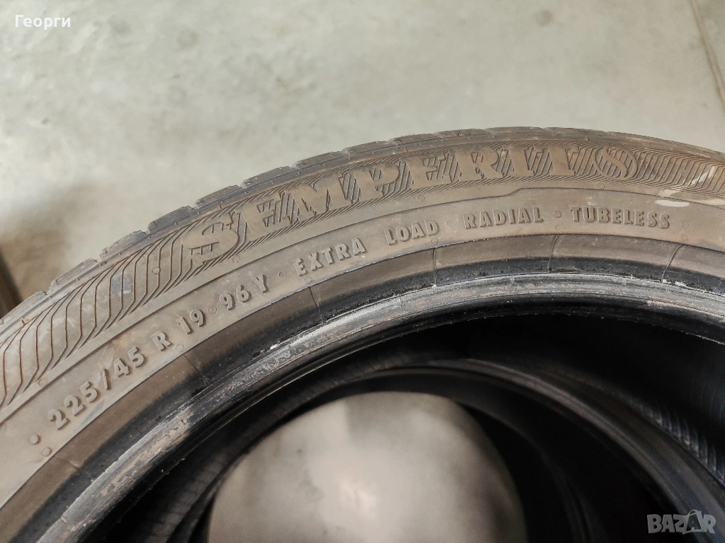 4бр. Semperit, 225/45/19, ДОТ 0920, 6.2mm грайфер. Гумите са перфектни, без забележки, проверени са машинно за кривини, балони! Разполагаме с всякакъв размер нова и втора употреба гуми от 14-22 цола за автомобил, джип и бус.